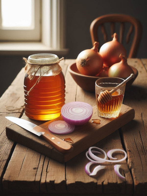 - Honig-Zwiebel-Sirup: schleimlösend und Husten lindernd