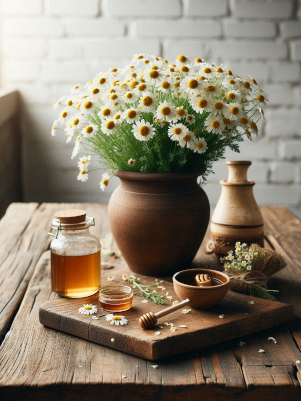 - Kamille-Oxymel: beruhigt Magen und Nerven
