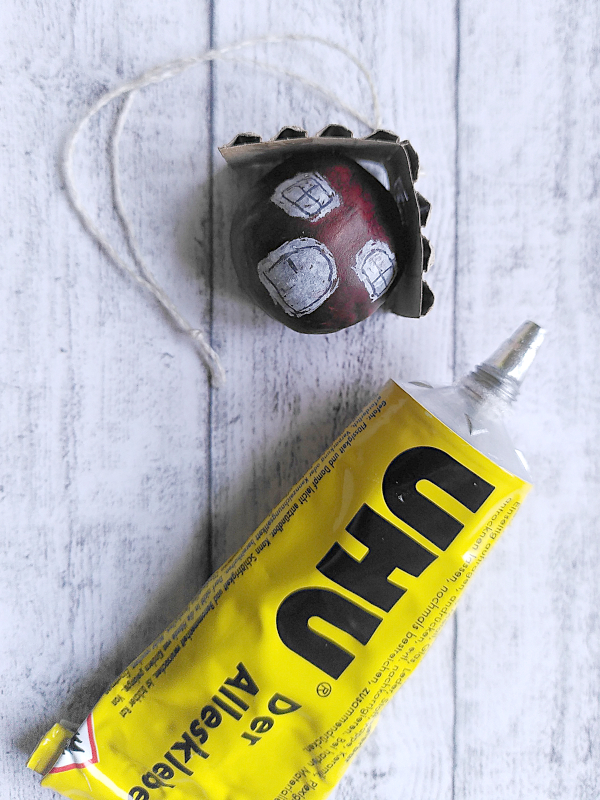 Platziere das Dach und fixiere es an mindestens 2 Punkten mit Klebstoff an der Kastanie.